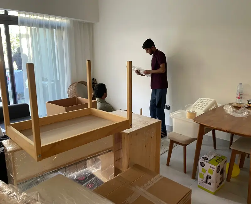 Our full villa & house moving service is all-inclusive. It includes a professional team, disassembly of furniture (like beds and tables), protective packing and wrapping, safe transport, and reassembly at your new home. We handle everything from start to finish.